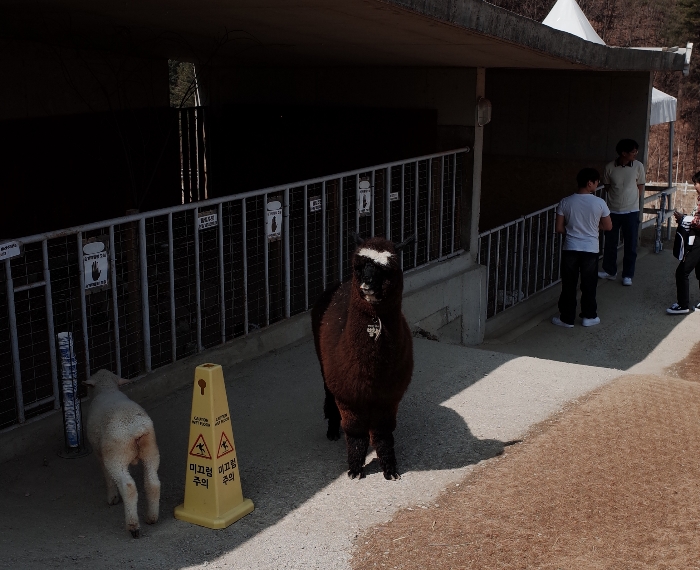 아이가 큰 동물은 무서워해서 어른 양은 패스하고 알파카를 보러 갔어요. 알파카도 무서워해서 결국 제가 당근을 줬는데 참 잘 먹더라고요. 생각보다 깨끗해 보였어요.